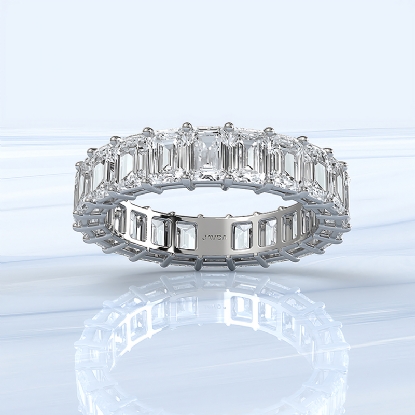 This stunning and timeless emerald cut lab-grown diamond women's eternity wedding band handmade in high quality 14k white gold. This elegant diamond anniversary ring showcases 5.25 ctw. carat emerald diamond in a shared prong setting IGI Certified. Pair this wedding band with a engagement ring for a bit of sparkle. Also available in 14k & 18k white gold, yellow gold, rose gold and platinum 950. If you don't find your desired jewelry, please don't hesitate to contact our designer to make your custom jewelry design.