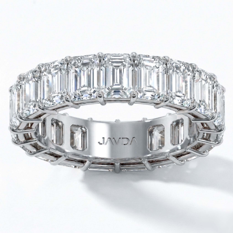 Accentuate the moment with this beautiful emerald cut lab grown diamond wedding band is handcrafted in 14k white gold. This lovely women's eternity anniversary ring, showcases 8 ctw. carat emerald diamonds in a shared prong setting IGI Certified, also available in 14k & 18k white gold, yellow gold, rose gold and platinum 950. If you don't find your desired jewelry, please don't hesitate to contact our designer to make your custom jewelry design.