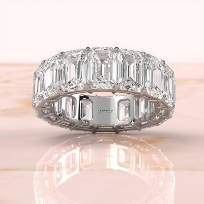 This gorgeous eternity emerald cut lab-grown diamond women's wedding band handcrafted in 14k white gold. This comfortable eternity wedding ring showcases 13.2 ctw. carat emerald diamonds in a shared prong setting on high polished metal IGI Certified. This wedding ring symbolize love and commitment. Also available in 14k & 18k white gold, yellow gold, rose gold and platinum 950. If you don't find your desired jewelry, please don't hesitate to contact our designer to make your custom jewelry design.