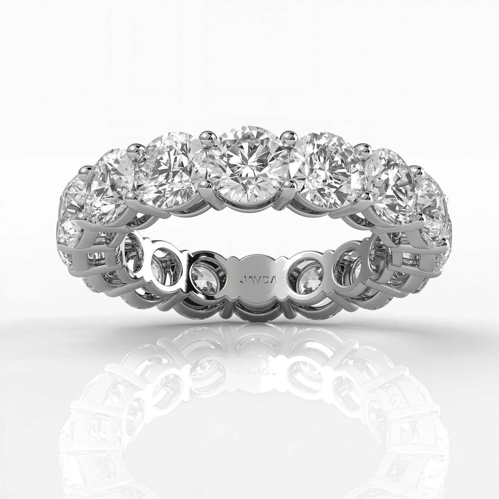 Symbol of everlasting love, this remarkable round cut lab grown diamond basket style women's eternity wedding band handmade in high quality 14k white gold. This wedding band showcases 4.90 ctw. carat round diamonds framed in a U cut prong setting to complete the look. Also available in your choice of the center diamond and gold metal in 14k & 18k white gold, yellow gold, rose gold, and platinum 950. If you don't find your desired jewelry, please don't hesitate to contact our designer to make your custom jewelry design.