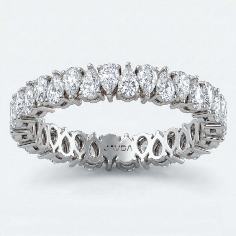 This breathtaking pear cut lab grown diamond women's eternity wedding band is a beautiful symbol of your love and commitment crafted in high quality 14k white gold. This 32 stone anniversary ring showcases 1.35 ctw carat pear diamonds secured with shared prong setting IGI Certified. Also available in 14k & 18k white gold, yellow gold, rose gold and platinum 950. If you don't find your desired jewelry, please don't hesitate to contact our designer to make your custom jewelry design.