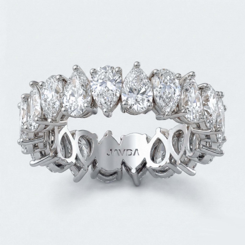 Delicately crafted this pear cut lab grown diamond women's eternity wedding ring crafted in 14k white gold, a lovely symbol of forever. Showcases 4.5 ctw carat dazzling pear diamonds framed in a shared prong setting. Also available in 14k & 18k white gold, yellow gold, rose gold, and platinum 950. If you don't find your desired jewelry, please don't hesitate to contact our designer to make your custom jewelry design.