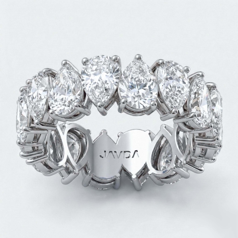 Beauty of exquisite craftsmanship this pear shape lab grown diamond women's eternity wedding band fashion ring crafted in high polished 14k white gold. This stackable anniversary ring features 6.10 ctw carat pear diamonds in a shared prong setting with IGI Certified. Also available in 14k & 18k white gold, yellow gold, rose gold and platinum 950. If you don't find your desired jewelry, please don't hesitate to contact our designer to make your custom jewelry design.