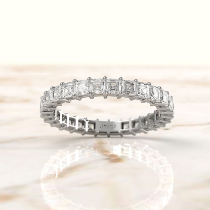 Built to match perfectly with shared prong setting wedding band features asscher cut lab grown diamond totalling approximately 1.85ctw carat with IGI Certified crafted in 14k white gold. Also available in 14k & 18k white gold, yellow gold, rose gold and platinum 950. If you don't find your desired jewelry, please don't hesitate to contact our designer to make your custom jewelry design.