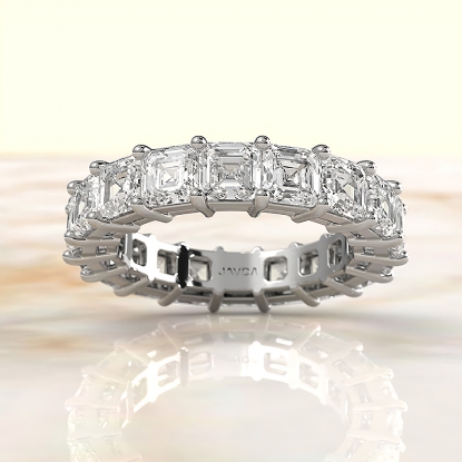 This dazzling asscher shape lab grown diamond women's eternity wedding band fashion ring crafted in 14k white gold. Showcases 6.5 ctw. carat asscher cut diamonds in a shared prong setting, perfect for those who prefer a refined look. Also available in 14k & 18k white gold, yellow gold, rose gold and platinum 950. If you don't find your desired jewelry, please don't hesitate to contact our designer to make your custom jewelry design.