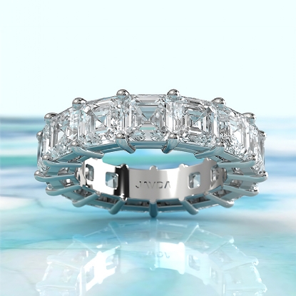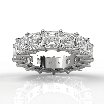Shimmering 15stone asscher shape lab grown diamond women's eternity statement ring made in 14k white gold. This beautiful stackable ring showcases 11.25ctw. carat asscher diamonds in a shared prong setting. This lovely design ring also available in 14k & 18k white gold, yellow gold, rose gold and platinum 950. If you don't find your desired jewelry, please don't hesitate to contact our designer to make your custom jewelry design.