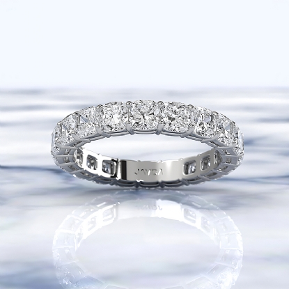 This breathtaking women's eternity cushion cut lab grown diamond wedding band ring crafted in high quality 14k white gold. Features 3.8 ctw. carat cushion diamond secured with shared prong setting Certified by IGI. Also available in 14k & 18k white gold, yellow gold, rose gold and platinum 950. If you don't find your desired jewelry, please don't hesitate to contact our designer to make your custom jewelry design.
