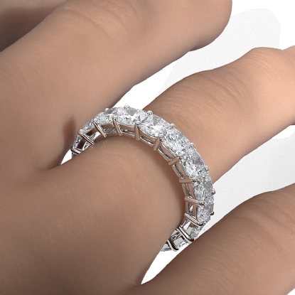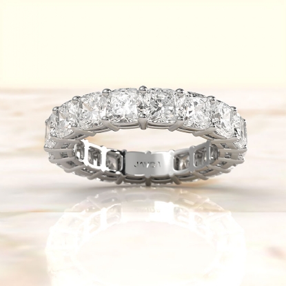 Elegance cushion cut lab grown diamond women's eternity anniversary ring crafted in 14k white gold. This gorgeous wedding band showcases 6.5 ctw. carat cushion shape diamond secured with shared prong setting certified by IGI enhances the beauty of ring. Also available in 14k & 18k white gold, yellow gold, rose gold and platinum 950. If you don't find your desired jewelry, please don't hesitate to contact our designer to make your custom jewelry design.