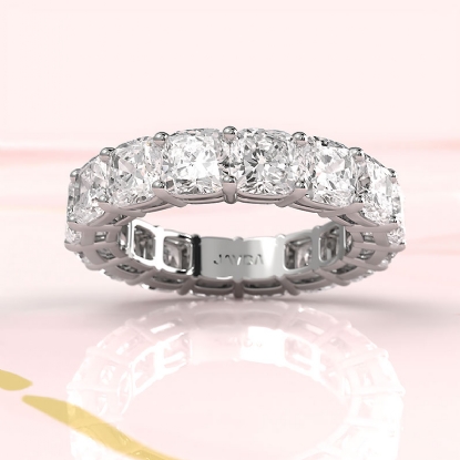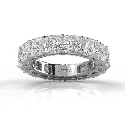 This fashionable cushion shape lab grown diamond women's eternity wedding band handmade in 14k white gold. This beautiful anniversary ring showcases 8.25 ctw carat cushion cut diamond in a shared prong setting with a high polished metal, gives any outfit a dash of glitz. This wedding band is a symbol of grace and self-expression, also available in 14k & 18k white gold, yellow gold, rose gold and platinum 950. If you don't find your desired jewelry, please don't hesitate to contact our designer to make your custom jewelry design.