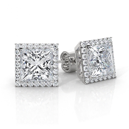 Elegantly fashioned, this pair of princess lab grown diamond women's halo earrings is made in 14k white gold. These stunning classic earrings feature 4.31 ctw carat, IGI Certified, securely held by claw prongs certified by IGI. This earring design can also be customized with your choice of center diamond and gold metal in 14k and 18k white gold, yellow gold, rose gold, and platinum 950. If you don't find your desired jewelry, please don't hesitate to contact our designer to make your custom jewelry design.