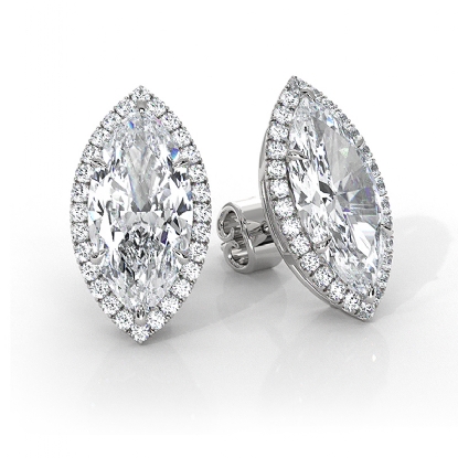 Halo Marquise Lab grown Diamond Claw Prong Women Earring IGI 14k W Gold 4.33ctw