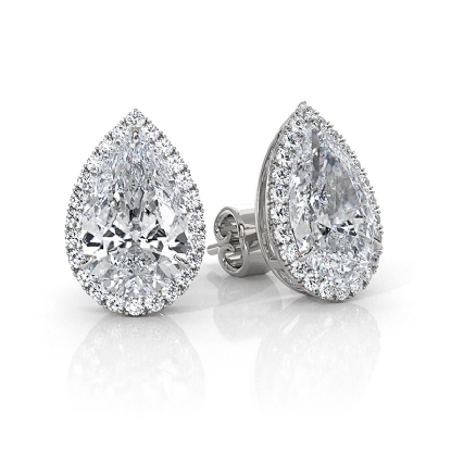 Gorgeous pair of claw prong basket pear shape lab grown diamond women's halo earrings, meticulously crafted in lustrous 14k white gold and certified by IGI. These stunning earrings will complement any attire. Showcasing 3.31 ctw carat total weight pear diamonds, beautifully secured with claw prongs. Perfect for anniversary, parties, or birthday gifts. Also available in 14k & 18k white gold, yellow gold, rose gold and platinum 950. If you don't find your desired jewelry, please don't hesitate to contact our designer to make your custom jewelry designs.