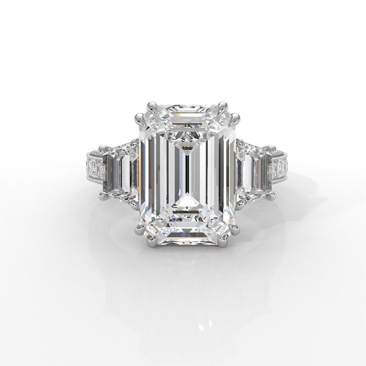 Captivating emerald cut 3 stone lab grown diamond engagement ring meticulously crafted to perfection of 14k white gold and certified by IGI. This wedding ring features 5.03 ctw emerald diamond and 1.54 ctw side diamond secured with prong setting. With a delicate band, this ring evokes classic beauty. Also available in 14k & 18k white gold, yellow gold, rose gold and platinum 950. If you don't find your desired jewelry, please don't hesitate to contact our designer to make your custom jewelry designs.