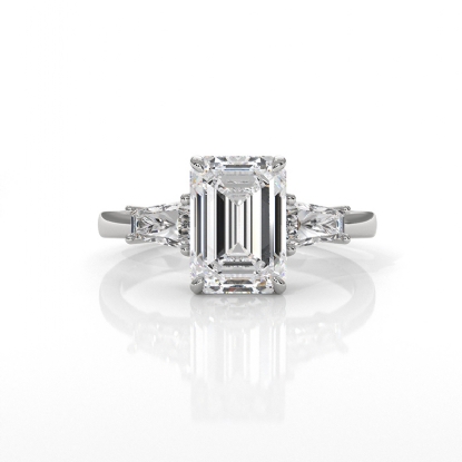 A gorgeous 3 stone emerald cut lab grown diamond engagement ring handmade in 14k white gold and certified by IGI. This beautiful anniversary ring featurrs a 2.01 ctw. emerald diamond and 0.6 ctw side diamond secured with claw prong setting. A classic design that never goes out of style! Also available in 14k & 18k white gold, yellow gold, rose gold and platinum 950. If you don't find your desired jewelry, please don't hesitate to contact our designer to make your custom jewelry designs.