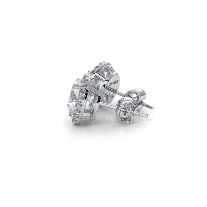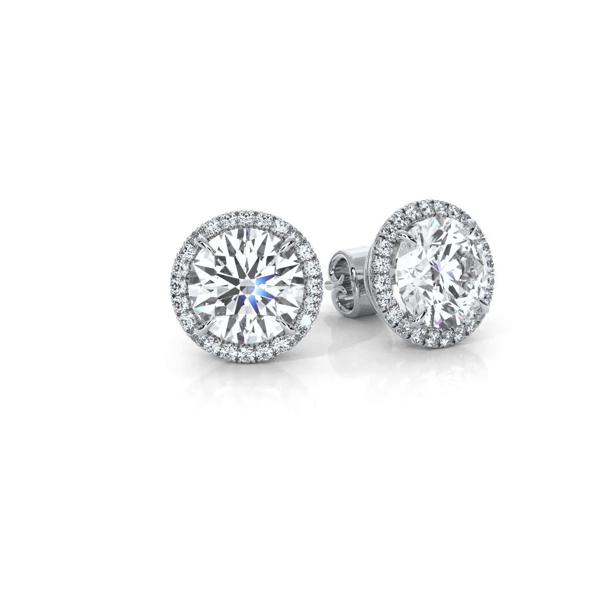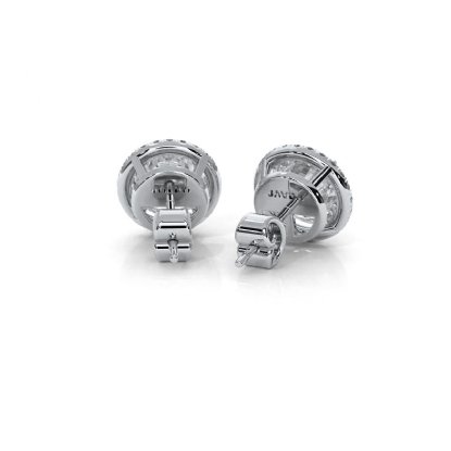 Javda Round Halo Studs Earring with Push Back for Women 14K White Gold 4.55 Ctw.
