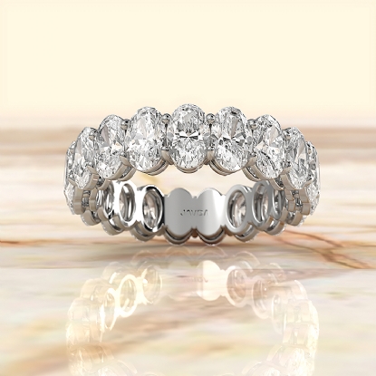 This beautifully designed shared prong oval cut diamond eternity anniversary ring is expertly handmade in premium 14k white gold. Showcasing 5.05 ctw. of stunning oval diamonds securely set in a shared prong setting, this IGI Certified wedding band exudes elegance and sophistication. Its timeless design makes it a perfect choice for celebrating love and milestones. Also available in 14k & 18k white gold, yellow gold, rose gold and platinum 950. If you don't find your desired jewelry, please don't hesitate to contact our designer to make your custom jewelry design.