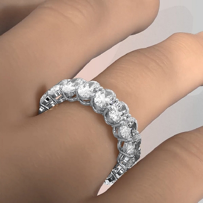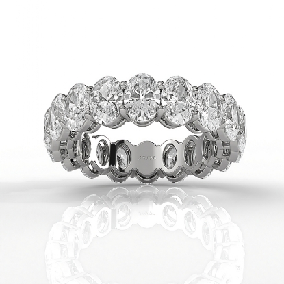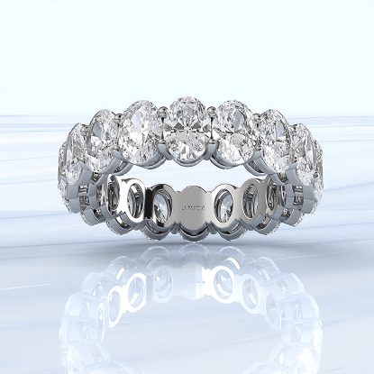 Shower her with affection and passion with this captivating oval cut lab grown diamond women's eternity wedding band, expertly handmade in 14k white gold. This elegant band features 5.45 ctw. of oval cut diamonds secured by shared prong setting, with 17 stones gracefully encircling her finger in a continuous sparkle. IGI Certified for guaranteed quality. Also available in 14k & 18k white gold, yellow gold, rose gold and platinum 950. If you don't find your desired jewelry, please don't hesitate to contact our designer to make your custom jewelry design.