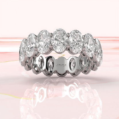This stylish oval cut lab grown diamond women's eternity wedding band, meticulously handcrafted in 14k white gold, offers timeless elegance. The delicate ring features 7.7 ctw. of oval diamonds set in a shared prong design, IGI Certified for quality assurance. This wedding band is the perfect way to showcase your mutual commitment on your most memorable day. Also available in 14k & 18k white gold, yellow gold, rose gold and platinum 950. If you don't find your desired jewelry, please don't hesitate to contact our designer to make your custom jewelry design.
