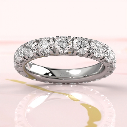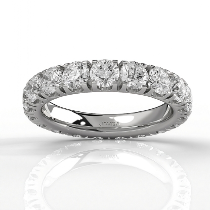 Celebrate the woman you cherish with this exquisite basket style round cut lab grown diamond women's eternity wedding band, handcrafted in 14k white gold. It features 2.9 ctw. of dazzling round diamonds set in a french u cut pave set , with IGI Certification for guaranteed quality. Also available in 14k & 18k white gold, yellow gold, rose gold and platinum 950. If you don't find your desired jewelry, please don't hesitate to contact our designer to make your custom jewelry design.