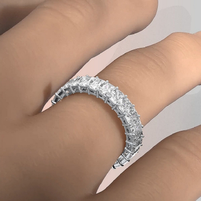 This beautiful and elegant radiant cut lab grown diamond eternity wedding band is crafted with high-quality 14k white gold. It features 3.60 ctw. of radiant diamonds, secured in a shared prong setting, and is IGI certified for quality assurance. The timeless design makes it perfect as a wedding band, worn on its own, or stacked with other eternity bands for a truly personalized look. Also available in 14k & 18k white gold, yellow gold, rose gold and platinum 950. If you don't find your desired jewelry, please don't hesitate to contact our designer to make your custom jewelry design.