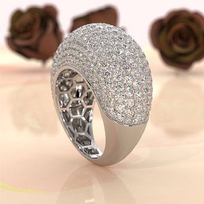 Add a luxurious touch to any occasion with this exquisite Dome Micro Pave Diamond Cocktail Ring. Crafted in 14K white gold, this ring showcases 4.87 carats total weight of sparkling lab grown diamonds meticulously set in a micro pave design that wraps elegantly around the finger. The bold, domed silhouette offers a dramatic yet refined look, making it a perfect choice for weddings, formal events, or as a show-stopping everyday statement. Designed for the modern woman who appreciates timeless glamour with ethical craftsmanship.