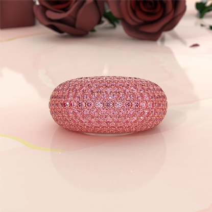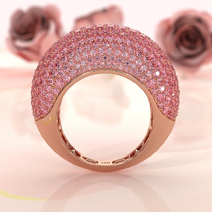 Dome Pave Pink Diamond Cocktail Women Wedding Band 14K White Gold Ring 4.87ctw