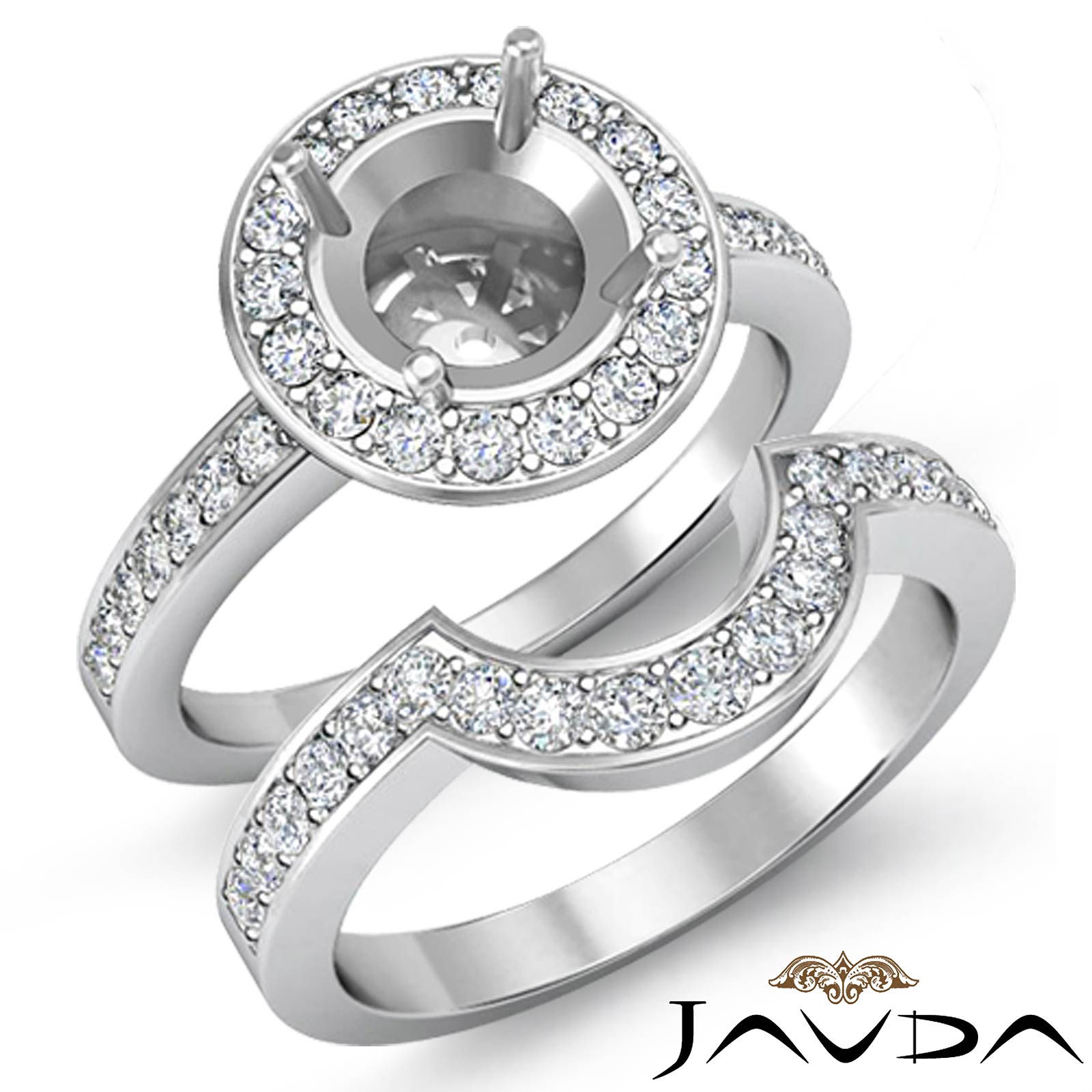 1.4Ct Diamond Engagement Ring Round Bridal Sets 14K White Gold Pave Semi Mount