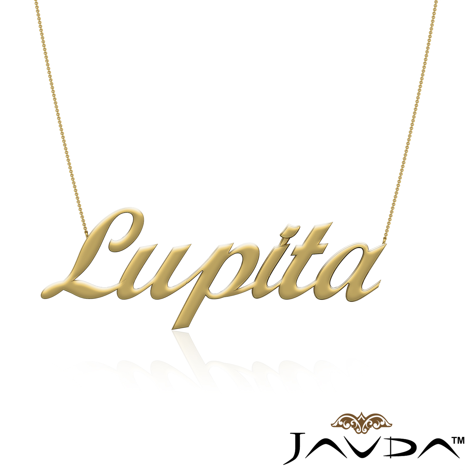 Custom Necklace Lupita Name Personalized Cursive Font Pendant 14k Yellow Gold