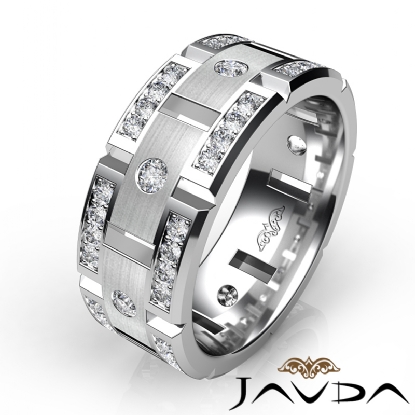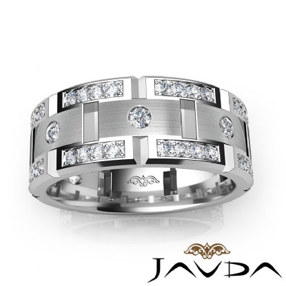 Round Diamond Wedding Eternity Band Men's Matt Finish Ring 14k White Gold 1.00Ct.