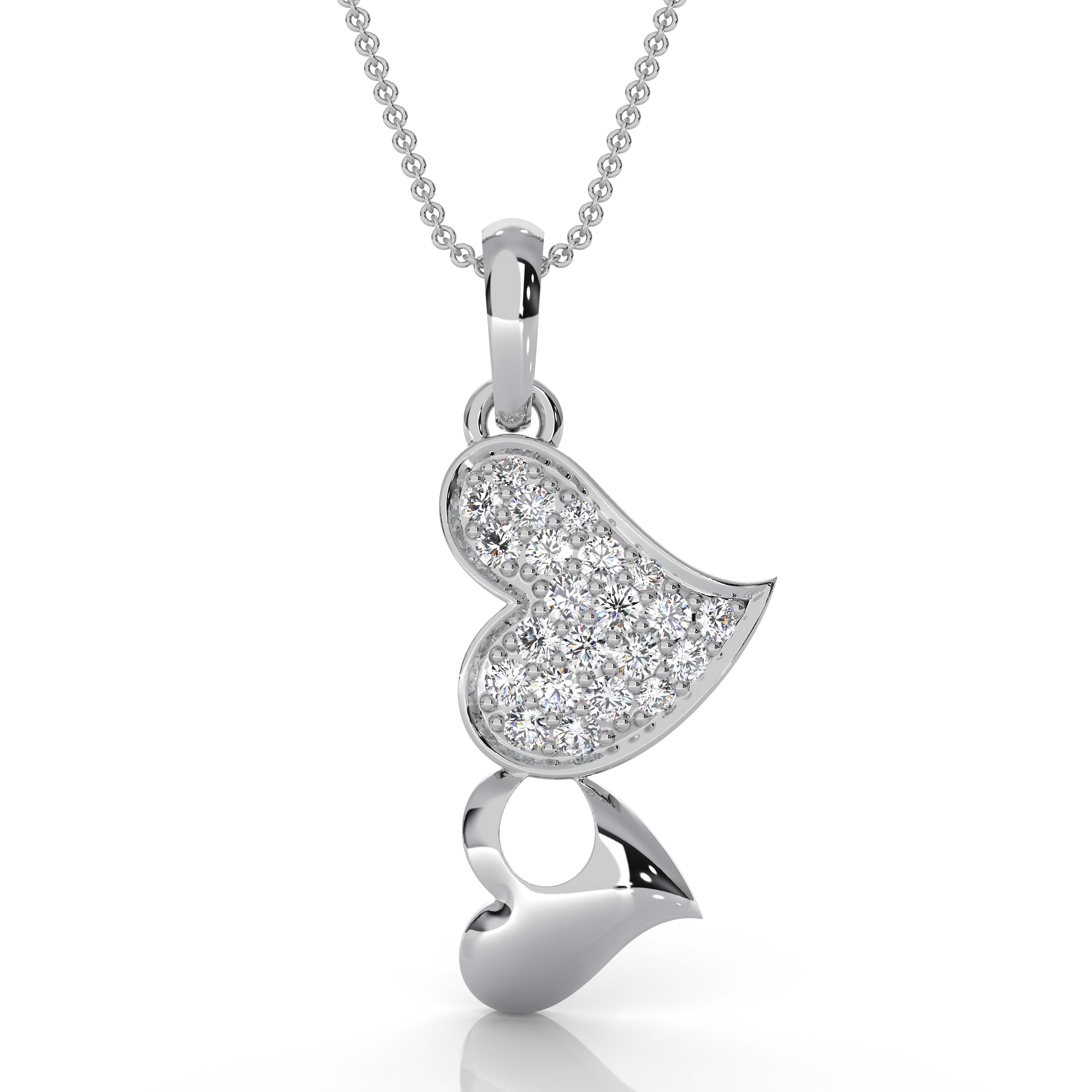This elegant heart-shaped pendant is crafted in solid 14K white gold and features a graceful open-heart design accented with brilliant pave-set diamonds. The pendant is set with a total of 22 lab grown round diamonds, offering a combined total diamond weight of approximately 0.25 carat, carefully arranged to deliver exceptional sparkle and refined brilliance. With a polished white gold finish and a total pendant weight of approximately 1.6 grams, this piece offers a lightweight yet luxurious feel suitable for everyday wear or special occasions.