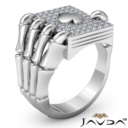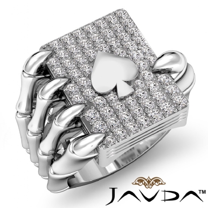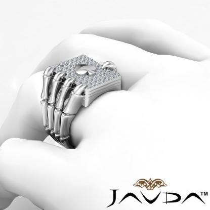 This uniquely hip hop style skull hand claw poker playing card mens diamond ring crafted in solid 14k white gold. Features sparkling brilliant round cut 0.80 carat diamonds in a micro pave setting. Available in 14k and 18k white gold, yellow gold, rose gold and platinum 950.