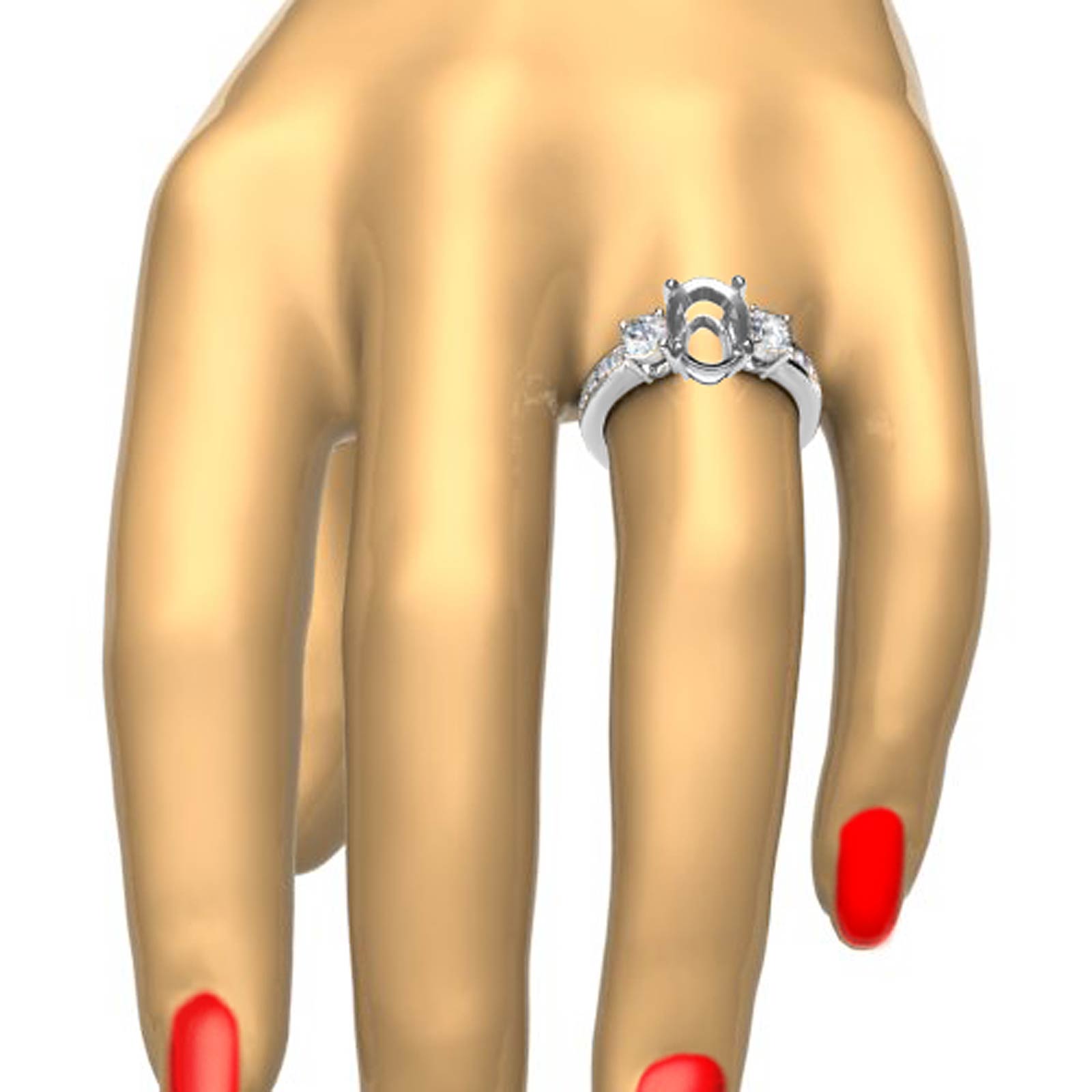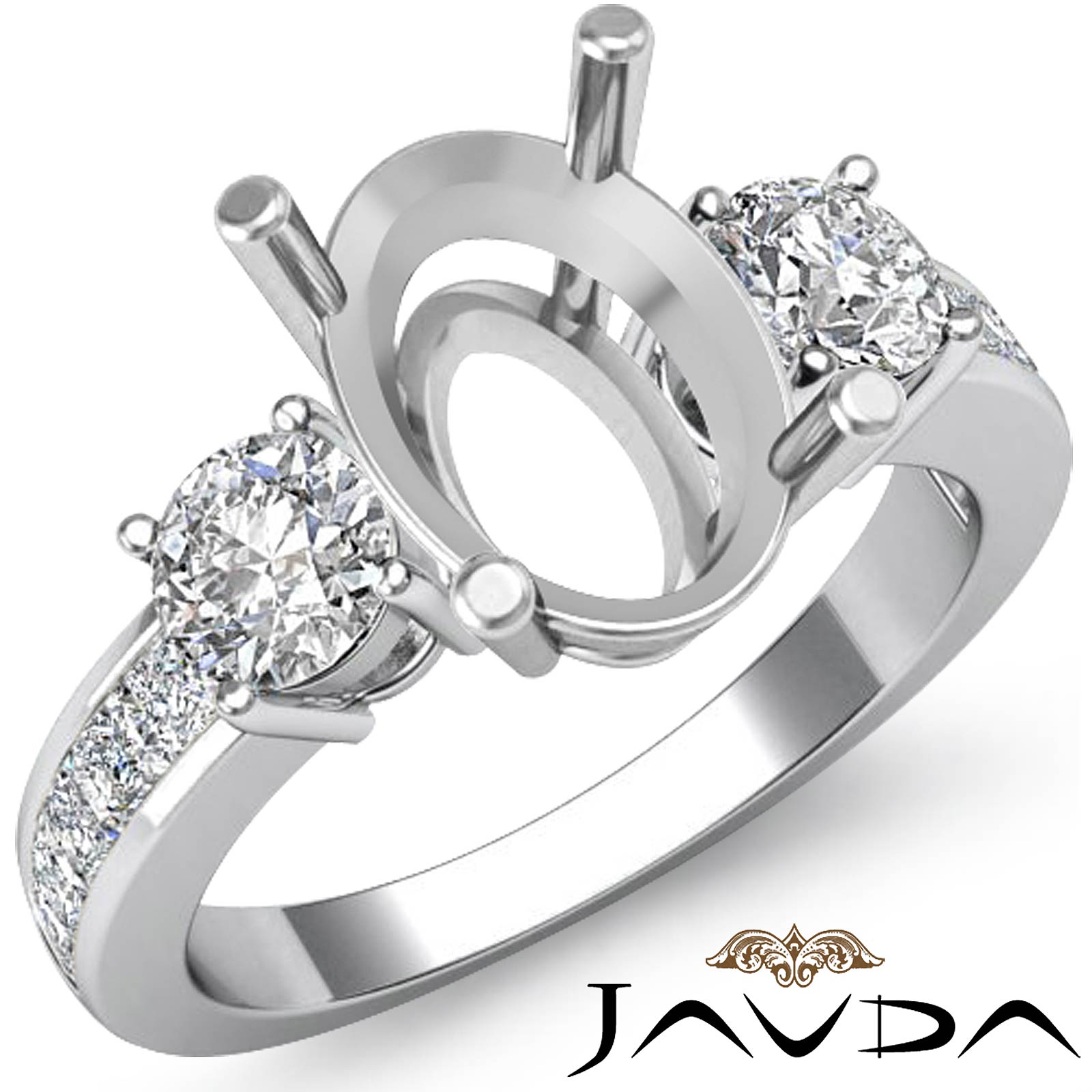 Diamond Engagement Three 3 Stone Ring Round Oval Semi Mount 14k W Gold 1.0Ct
