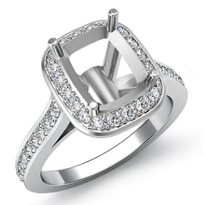 0.70ct Diamond Engagement Ring 14k White Gold Cushion Semi Mount Halo Setting