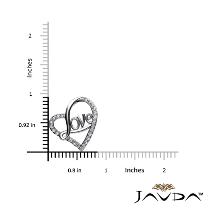 Love Script Heart Pendant Necklace Round Diamond 14k White Gold 0.45Ct