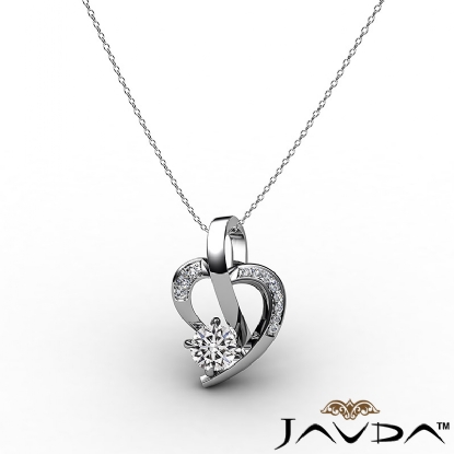 Round Diamond Accent Heart Pendant Necklace In 14k White Gold 0.60Ct