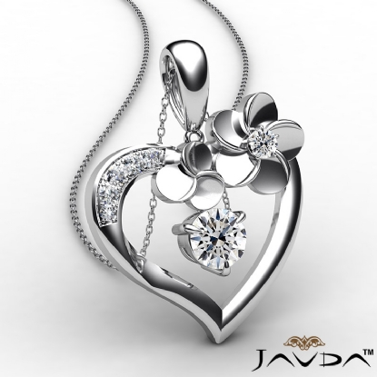 Flower Heart Pendant Necklace In 14k White Gold Round Diamond 0.55Ct