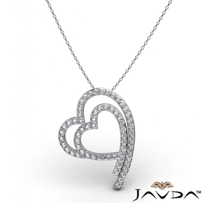 Shadowed Double Heart Diamond Pendant Necklace 14k White Gold 0.64Ct