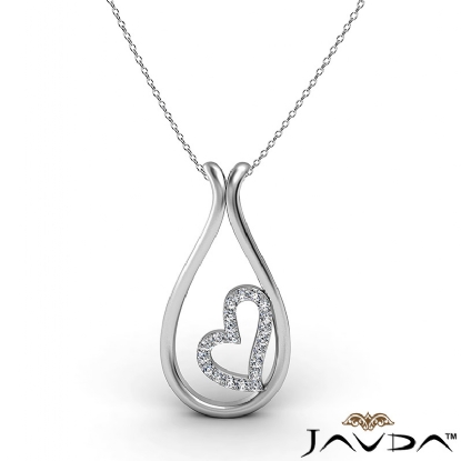 Dew Drop Little Heart Diamond Pendant Necklace In 14k White Gold 0.21Ct