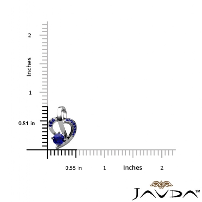 Round Sapphire Gemstone Accent Heart Pendant Necklace 14k White Gold 0.60Ct