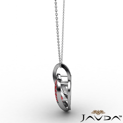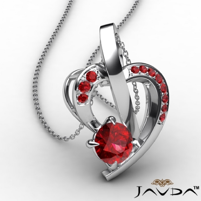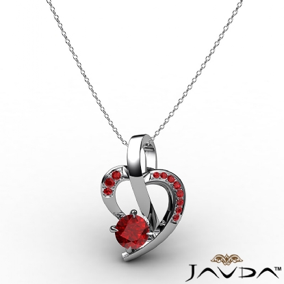 Round Ruby Gemstone Accent Heart Pendant Necklace 14k White Gold 0.60Ct