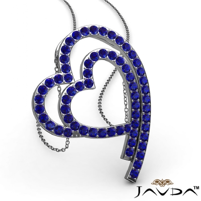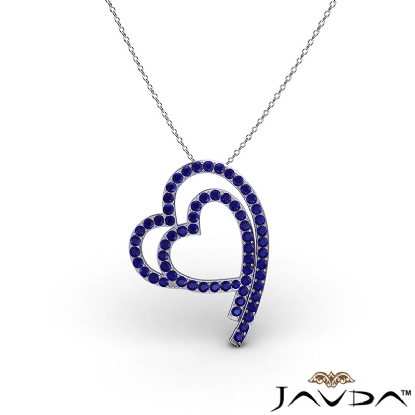 Shadowed Double Heart Sapphire Gemstone Pendant Necklace 14k W Gold 0.64Ct