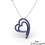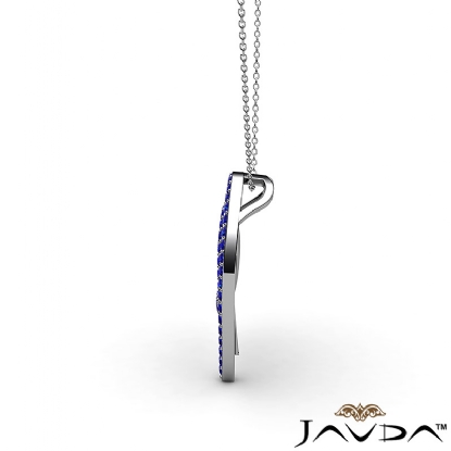 A charming shadowed double heart sapphire gemstone pendant necklace crafted in 14k white gold. Features double lined heart beautifuly set with 0.64 carat round sapphire in a micro pave setting.
