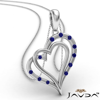 Adorable two heart sapphire gemstone pendant necklace crafted in 14k white gold. This heart pendant showcases 0.15 carat sapphire in a micro pave setting.