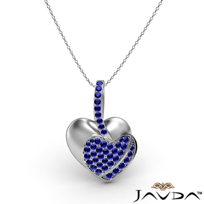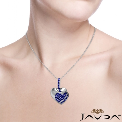 Show your love for her this Valentine's Day, Gemstone filled double heart pendant necklace crafted in 14k white gold. This pretty style features a polished finish heart with 0.55 carat round sapphire gemstone in a micro pave setting filled heart.