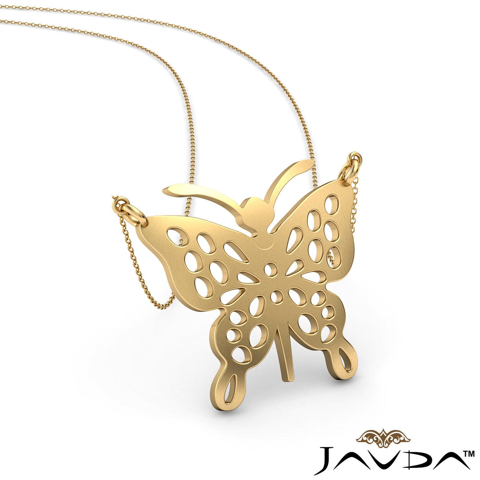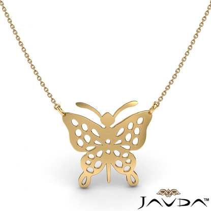 A beautiful butterfly charm pendant necklace made in solid 14k yellow gold. This high polished gold pendant features 18 inch rolo chain that secures with a spring ring clasp and durable for long-lasting use.
