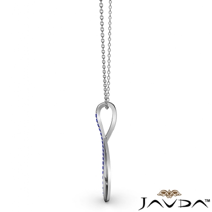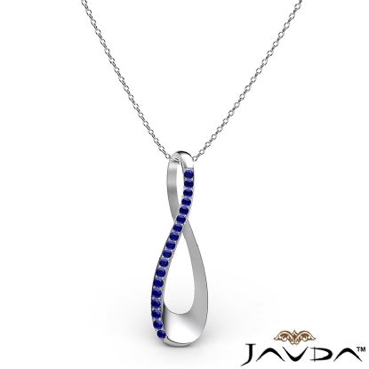 Affordable gemstone infinity pendant necklace made in 14k white gold. This stylish infinity symbol pendant features 0.26 carat round sapphire gemstone in micro pave setting and 18 inch rolo chain.