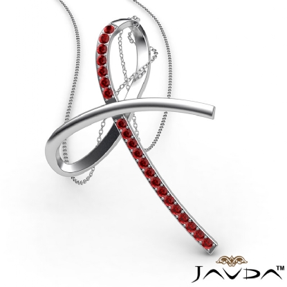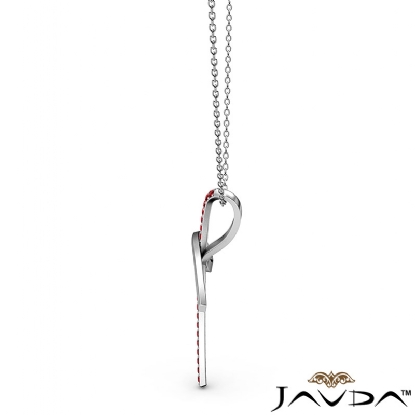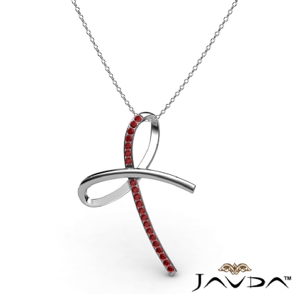 Simple Bow Pendant Necklace 18 Inch Chain 14k White Gold 0.32Ct Round Ruby