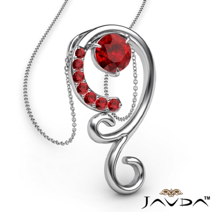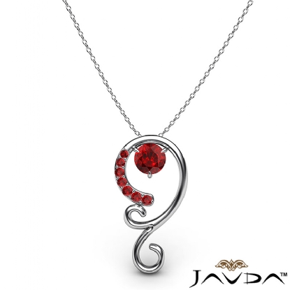 Stylish graduated ruby pendant necklace made in polished finish 14k white gold. This sophisticated designer pendant features 0.28 carat round ruby gemstone gradually set in a micro pave with 18 inch rolo chain.