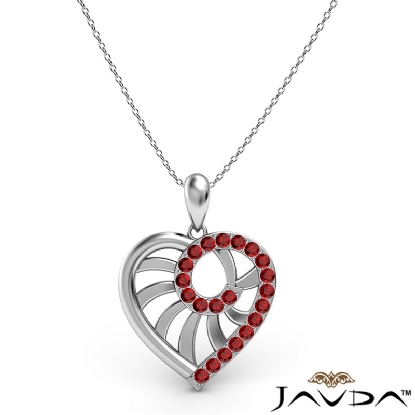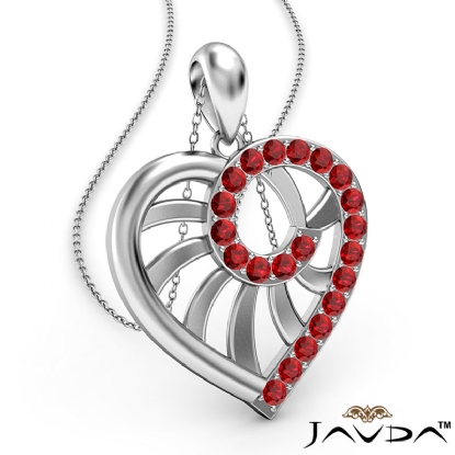 Swirl Heart Pendant Necklace 14k White Gold 18 Inch Chain 0.39Ct Ruby