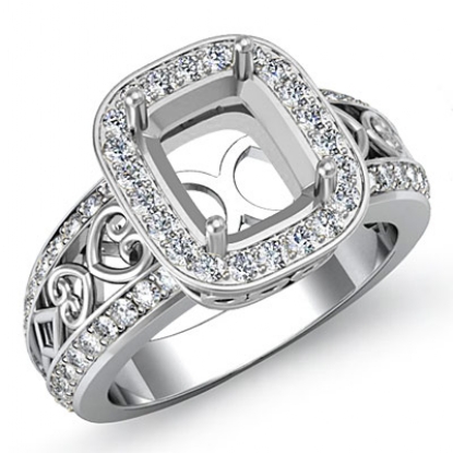 0.75 CT Diamond Engagement Ring Halo Setting 14k White Gold Cushion Semi Mount